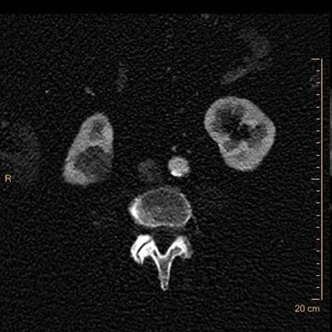 Conventional CT: Do you see the lesion in upper pole of the right kidney?