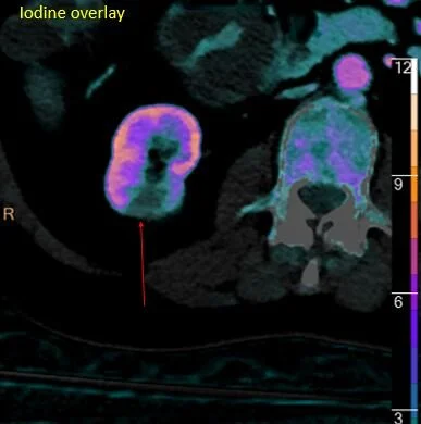 Moral of the story: Look for organ infarcts with spectral CT, and when you see them, chase a source, almost always you will find one. CT will compliment a negative echo.