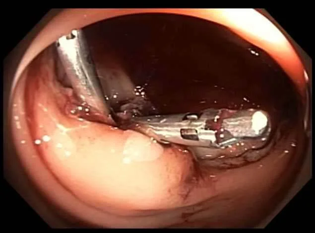 Iodine map: Confirms bleeder arising from near the anastomosis