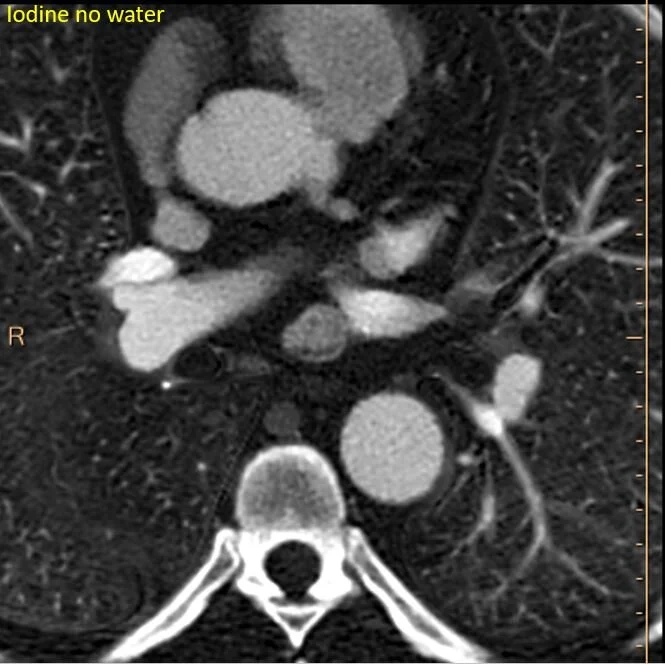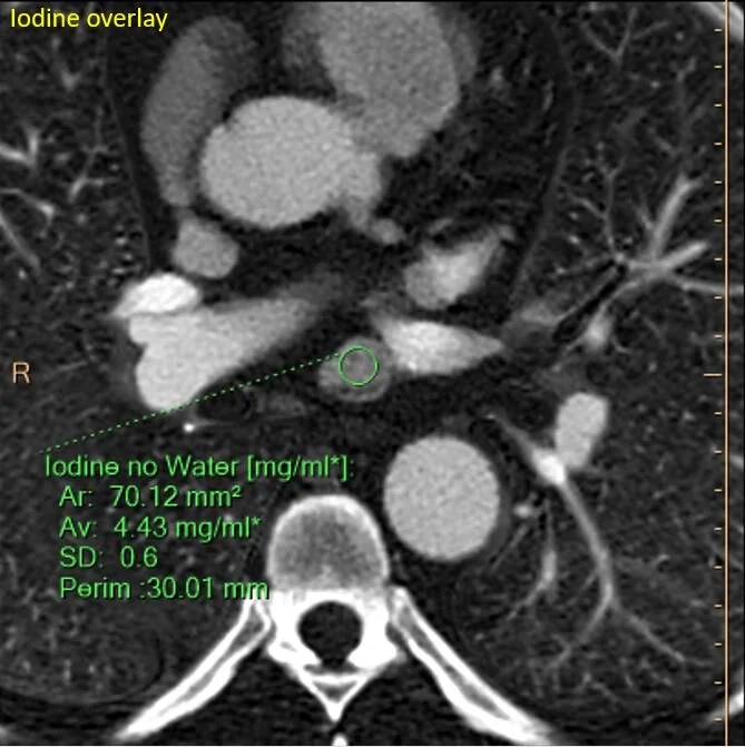 Spectral CT gives a clue. The nodule is intensely enhancing, with very high iodine uptake. Combined with the location of the nodule in the roof of the left atrium, a cardiac paraganglioma was suspected. A gallium 68 dotatate scan performed, which shows intense uptake in this nodule, confirming the diagnosis.