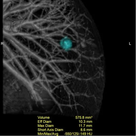 Screening mammogram showing breast nodule. No, there is no way I would have seen it.